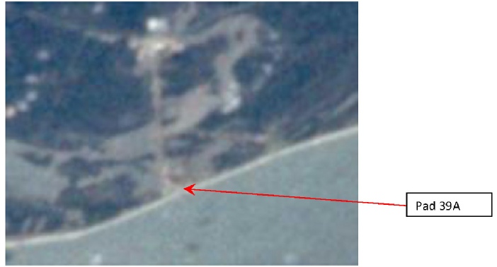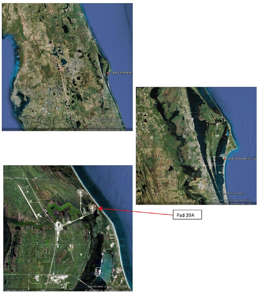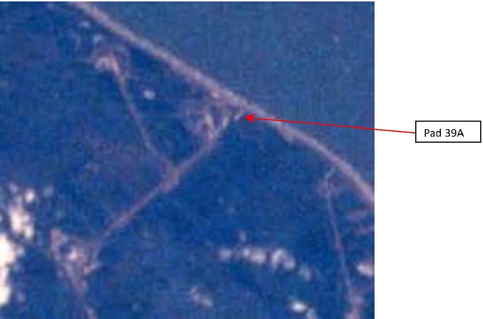 Having established that Apollo 8 was present when the observation was made, the next step is to see whether it was visible from Apollo 7. So that we can work out what we are looking for, figure 4.10.49 shows the view of Pad 39 in Google Earth, both from a distance and in close up.