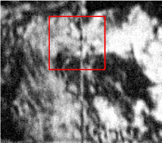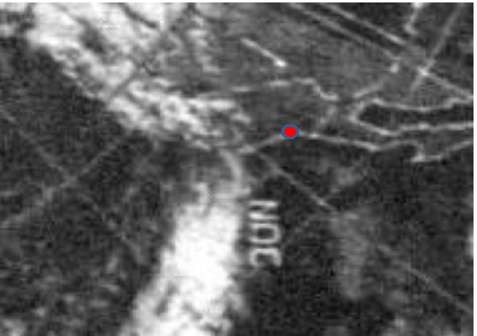 Figure 4.10.40: ESSA image from 14/10/68, rotated to match the orientation of figure 4.10.35. Possible light cloud indicated by red arrow.