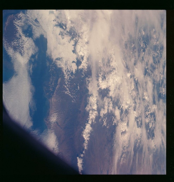 What we will attempt to do here is follow the timeline and mission transcripts (available here), picking out references as appropriate and seeing if photographs can be identified, then compared with the satellite record. One feature of this (and other LEO missions) that can be observed in the transcripts is a telling indicator that lunar bound crews could not possibly have been in LEO ‘pretending’ to be somewhere else.
