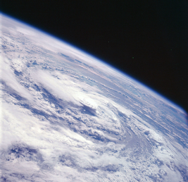 Again it should be obvious that the photograph, despite the oblique viewing angle, shows a much smaller area than the photographs examined in preceding sections, and any image showing a whole Earth image is absolutely not going to be in LEO.