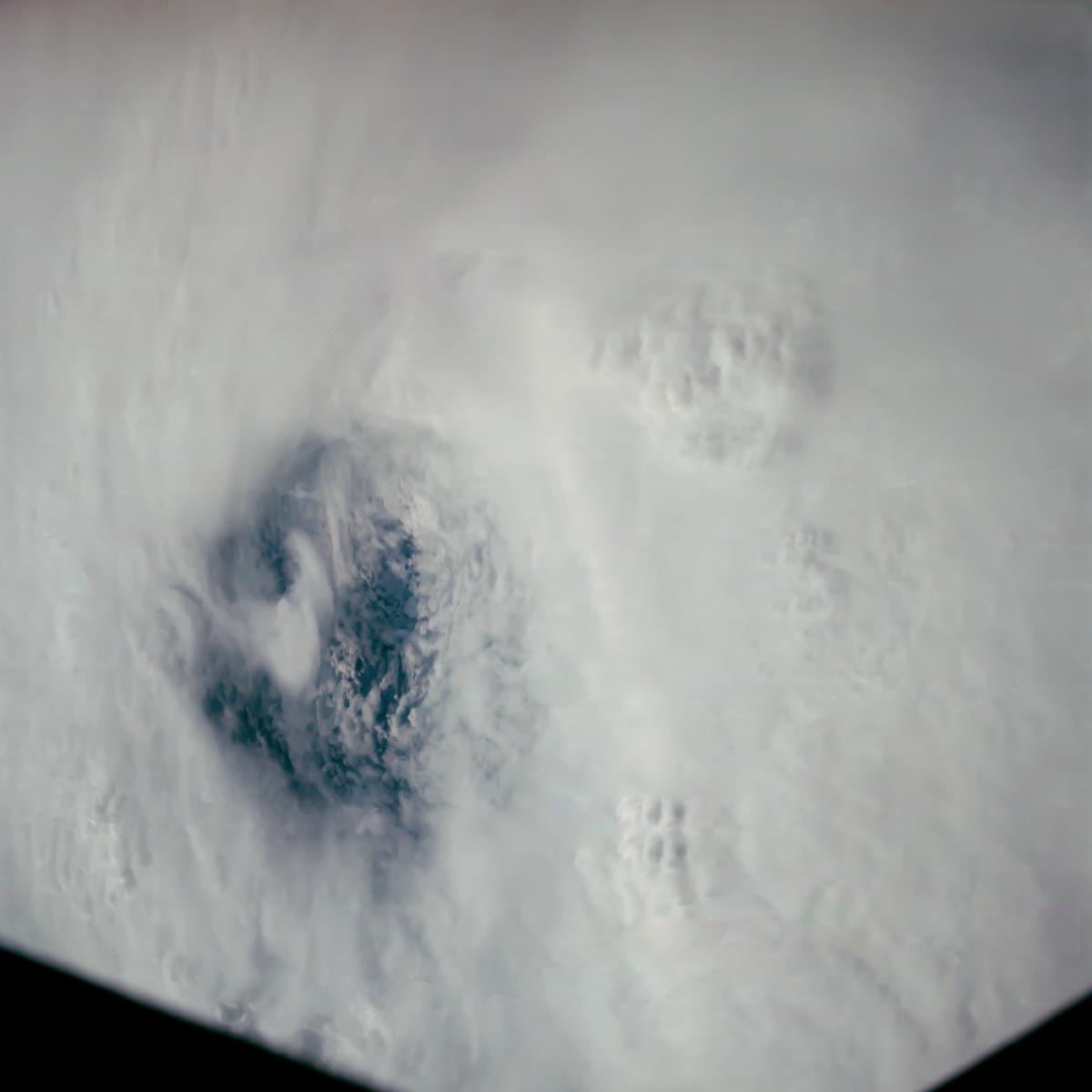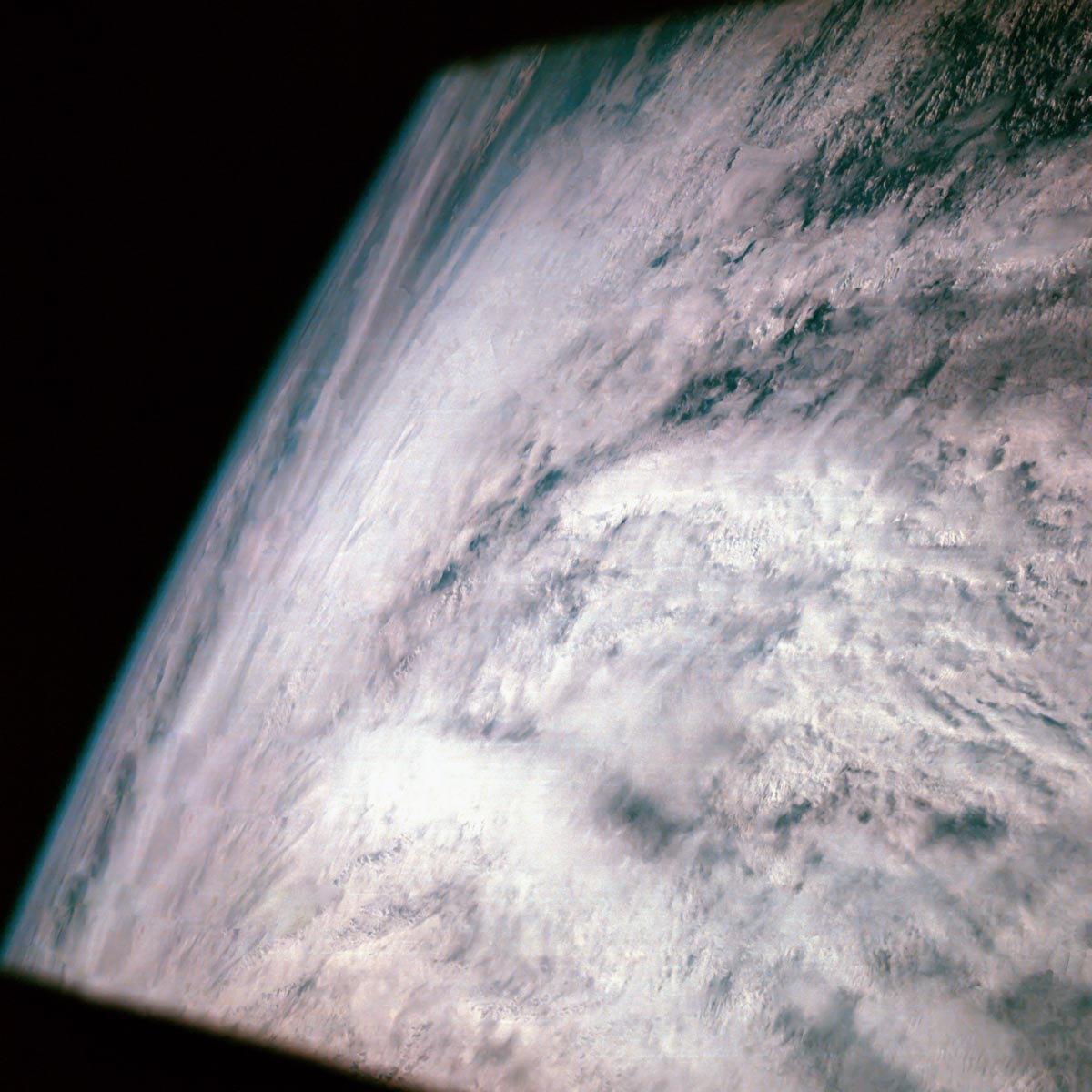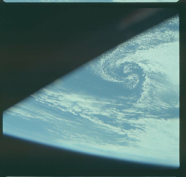 The last images in the magazine are, as mentioned above, discussed in many reports scholarly and otherwise, with good reason. The mission is the first to view tropical storms in such detail with from space, and the eye of a hurricane was marked for the first time by an overflying spacecraft. The usefulness of the space observation was not lost on the general public – one newspaper report (read out to the crew) describes them as a “manned weather satellite” under the headline "Big storm tracked by Apollo 7".