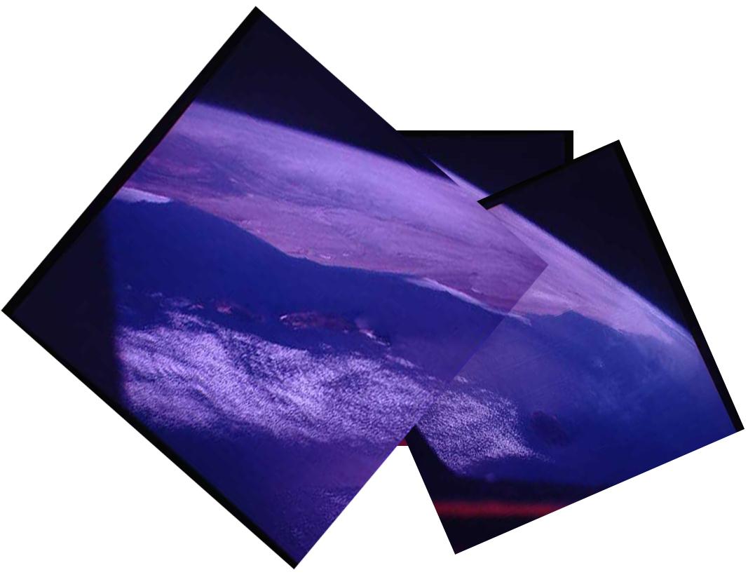 The long band of cloud stretching onshore from the Pacific is very obvious in the satellite picture, although the other less substantial cloud masses are not as easily made out. The satellite pass for the ESSA image would have been 00:05 on the 13th, around 6 hours after the pass by Apollo 7. It should again be obvious from the photomontage in figure 4.10.29 that despite using 4 photographs, the portion of the Earth visible is still extremely small, covering a swathe around 500 miles wide. The difference between a fixed camera position used for the preceding unmanned missions and the obviously human hand should also be clear.