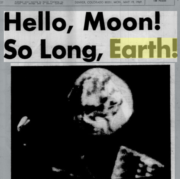 As with Apollo 8, it is worth remembering that this newspaper front pages are mostly from May the 19th, the day after launch, and therefore any photograph of Earth can only have been taken before that day. It is also interesting to note how well the Apollo mission is succeeding in distracting the media from the Vietnam war. The moon missions are often accused of being a deliberate distraction from Vietnam, but while Apollo 10 may have temporarily stolen the headlines, it is clear where the remainder of the Post Crescent’s focus lies, and other stories share equal billing with the Apollo image.