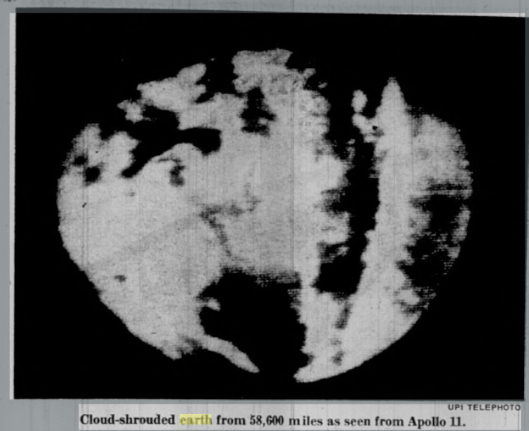 On the Coshocton Tribune page, available here, we are shown what is obviously a kinescope image of the Earth from the TV broadcast, and the newspaper is clearly dated the 17th of July. It also says this as the caption: