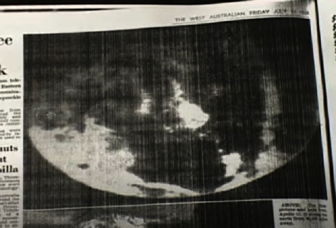 Jarrah gets all confused by the Julian date used in the image, which clearly identifies it as being taken on day 198, or July 17th. He confirms that the newspaper would have gone to print at around 9pm on the 17th, which is 8 hours ahead of GMT, meaning that it had 12 hours to get hold of the images. In a subsequent video he tries to explain away the confusion by not knowing if January first was day 0 or not. Since when was there a January the 0th? If he’d only looked at the news broadcasts instead of relying on compilation reels sent out after the missions he might not have shot himself in the foot so badly. On the other hand, he also wouldn’t have confirmed that the TV image was taken on the day it was always claimed to have been taken and appeared in an Australian newspaper, not kept a secret. Jarrah’s later ‘explanations’ for his error are more him trying to pin the blame on someone else.