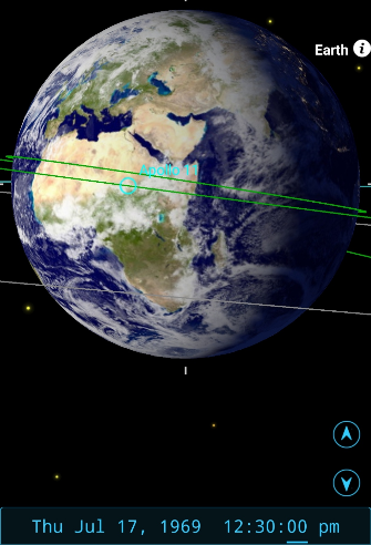 We are again faced with an image from Apollo that shows exactly what is visible in satellite images, and this time it is an image that was shown to millions in a live broadcast. This broadcast took place at 23:31, which is where SkySafari’s terminator has been set, and this also shows that the view is showing exactly what it should show.