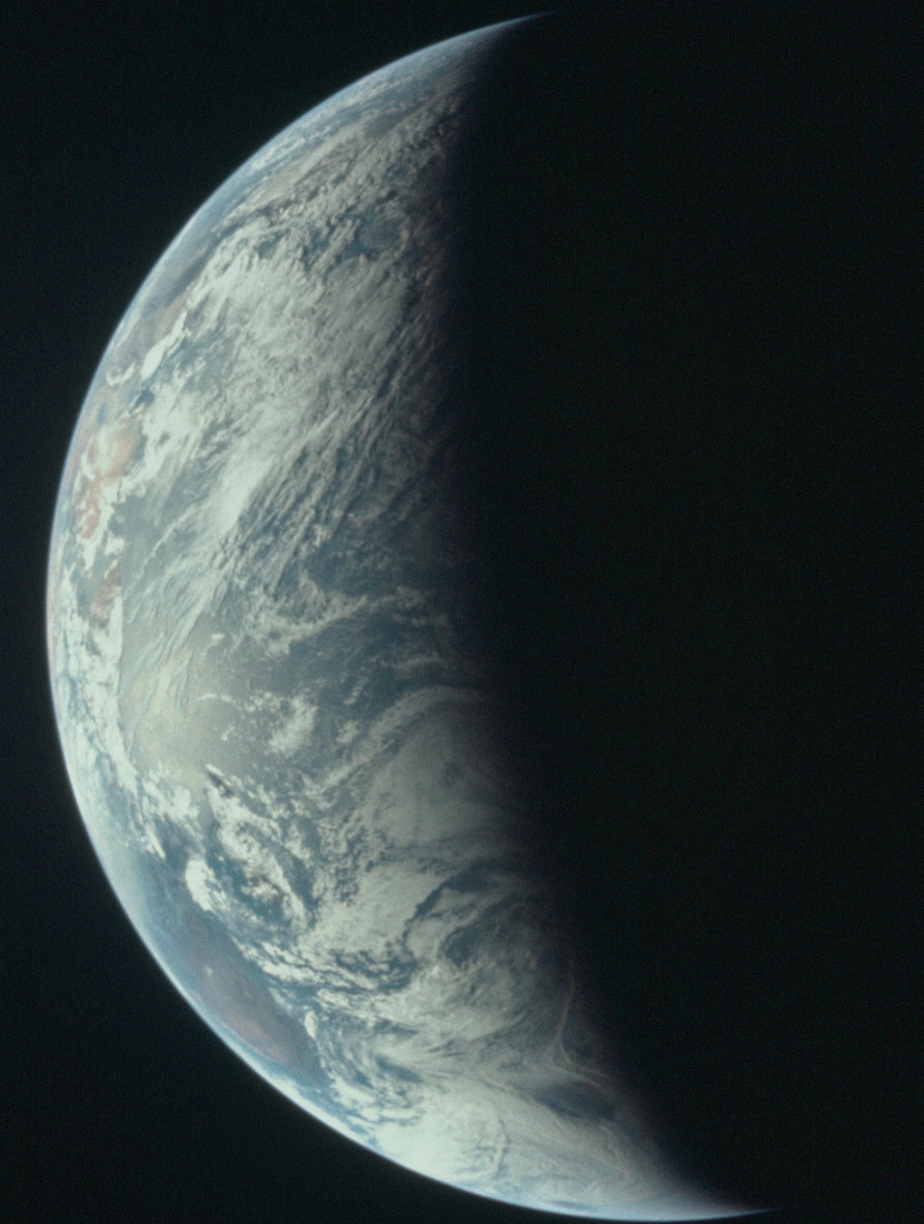 193:03:03 Collins: The Earth is really getting bigger up here and, of course, we see a crescent.