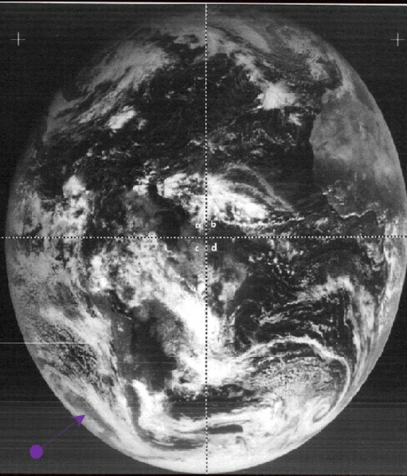 The ATS image has been included, but as should be obvious from the preceding page, only one fragment of a weather system shown in the Apollo image is visible in it (identified by the purple coloured arrow). This completely eliminates ATS-