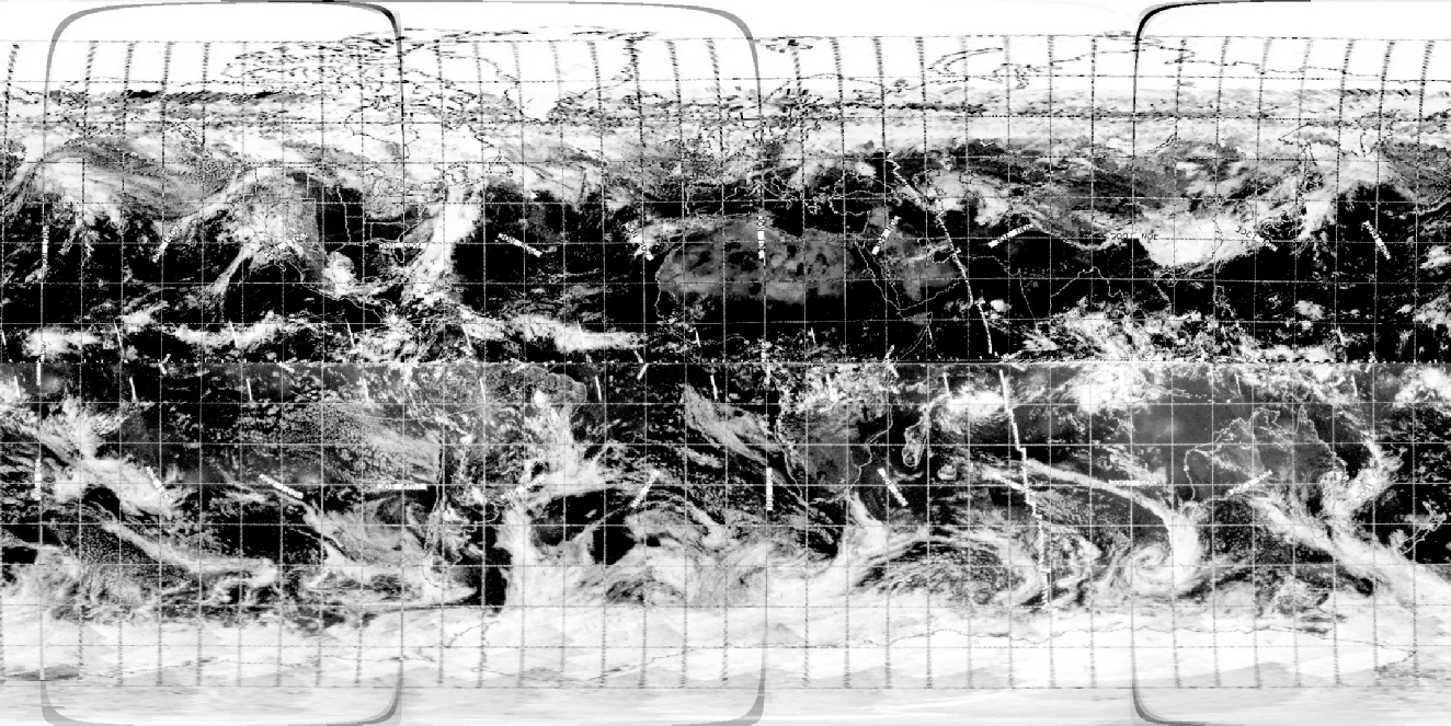 NIMBUS' orbits covering the Pacific area in the image are 2876/2877, and these are shown as starting at 19:53 & 21:34 on the 14th respectively. The NIMBUS tile showing the clouds picked out by the magenta arrow was taken at 21:06. ESSA's corresponding orbit would be 3267 (track 5), which commenced at 21:01. Again there is a good five hour gap between the satellite and Apollo images. As with the previous example, this time difference means that some of the weather systems have evolved by the time that the Apollo image is taken. The cloud pattern identified by the green arrow, for example, has moved some distance eastwards to a position more directly below that picked out by the blue arrow, and the red arrowed cloud has also moved much closer to the blue arrowed systems. The same weather systems but evolved into a slightly different configuration by the time the Apollo image is taken, and further indication that the Apollo image is not a straight copy of a satellite photograph.