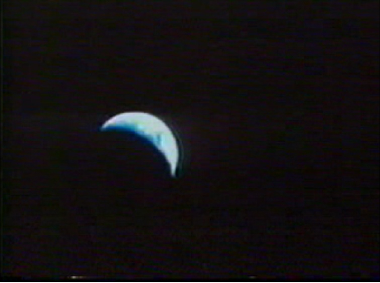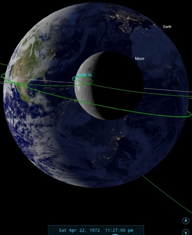 As with the first day out on the surface, we have to wait until the end of the 2nd EV, with a similar sequence showing Earth broadcast live on TV, and again thanks to the transcript noting Ed Fendell’s camera work we can place it very precisely in terms of time at 23:27 GMT on April 22nd.