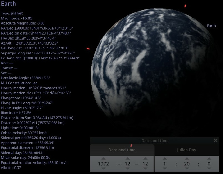 Figure 4.9.6.8: Stellarium and Fourmilab views of Earth at the suggested photography time.