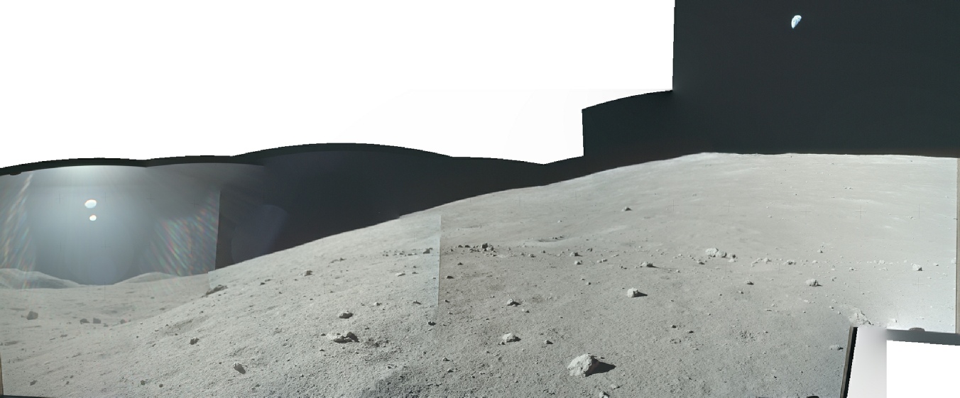 Just for fun, here’s part of Cernan’s panorama with the Earth above the massif added (figure 4.9.7.9).