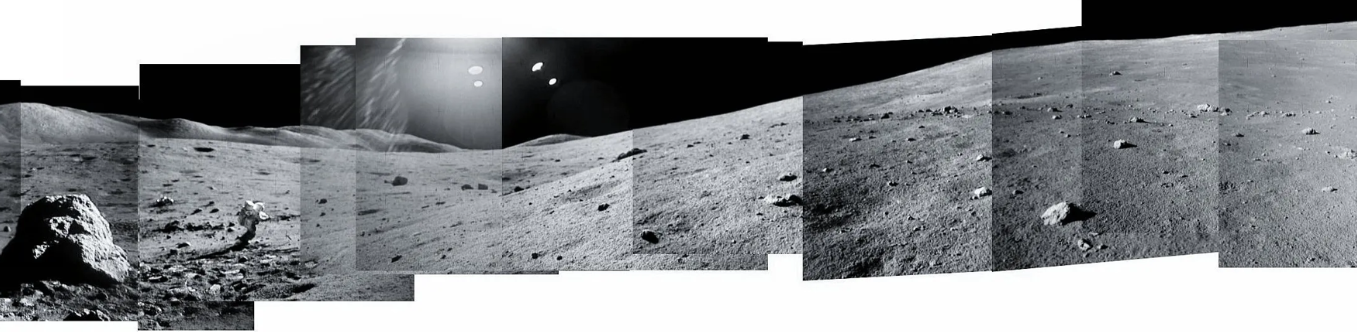 A few minutes after these shots of Earth, and 15 minutes after the earlier boulder 2 shots of Earth, Cernan takes a panoramic view of the Taurus-