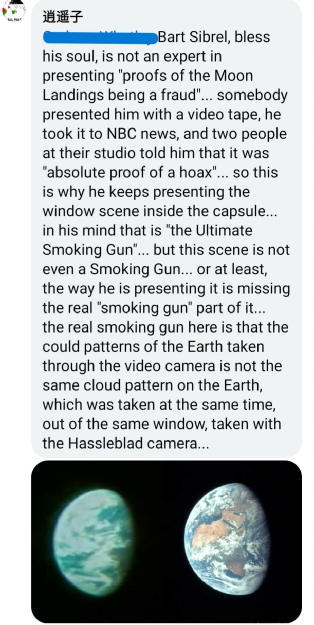 Going back to the TV broadcast for a moment, one particular moon hoaxer (the one who claims he works for the CNSA), believes it to be a ‘smoking gun’, as shown in the repeated posts he’s made about a Bart Sibrel interview (figure 4.3.2.31)