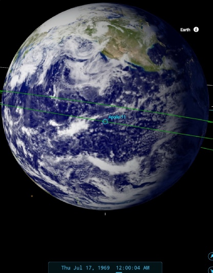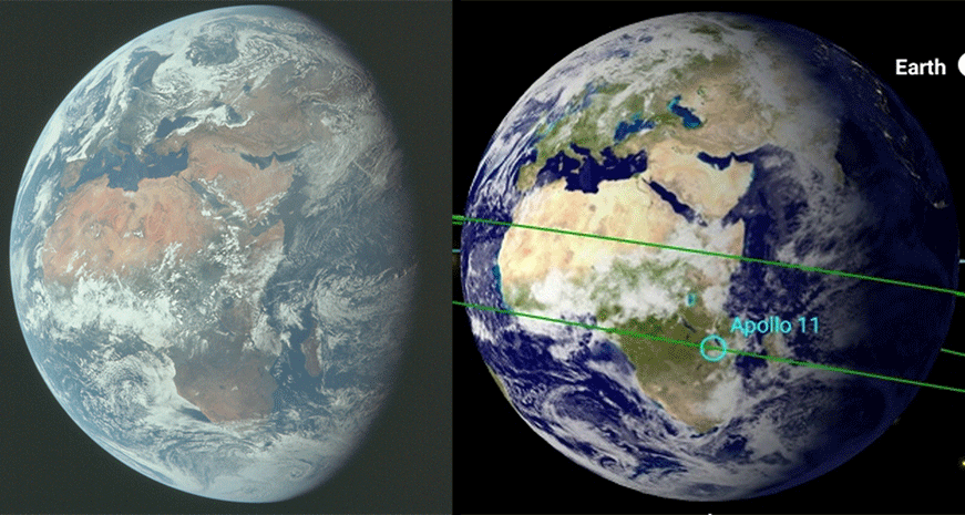 This original image is clearly labelled as being from the 17th of July, but as the detail of the Earth is so poor, how can we be sure that it is from this date? The answer lies in viewing the footage. At 34:07, Collins says: