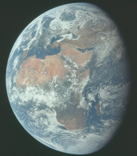 027:17:09 Aldrin: Hey, Jim, I'm looking through the monocular now, and I guess to coin an expression, the view is just out of this world. I can see all the islands in the Mediterranean. Some larger and smaller islands of Majorca, Sardinia and Corsica. A little haze over the upper Italian peninsula, some cumulus clouds out over Greece. The Sun is setting on the eastern Mediterranean now. The British Isles are definitely greener color than the brownish green that we have in the islands, in the peninsula of Spain. Over.