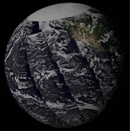 At which point he turns the camera. During that movement there is a point when the Earth appears in exactly the same position as is featured in the photograph, and this is shown in figure 4.3.2.38. Even after adjusting the levels on the newspaper image, details are still difficult to make out. However the gap in cloud off south America is easy to see, as is the west coast of north America.