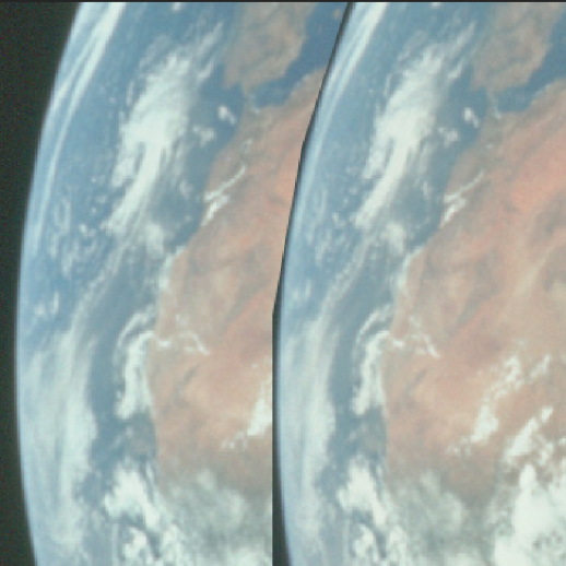 The comparison of the TV screenshot and that Apollo still image is useful for two reasons. Firstly, the rotation of the Earth is clear in the hour between taking the image and the broadcast, showing that they were not taken at the same time. In fact, it’s even possible to detect rotation of the Earth from the start and end of the sequence, even if you only use the 15 or so minutes that they are at maximum (figure 4.3.2.2).