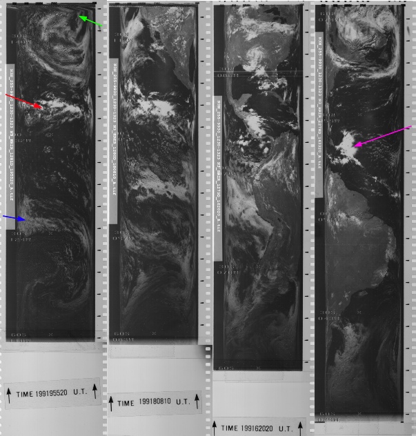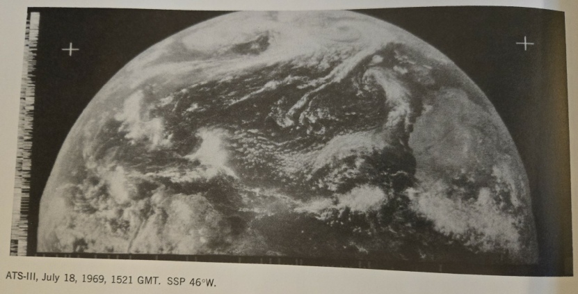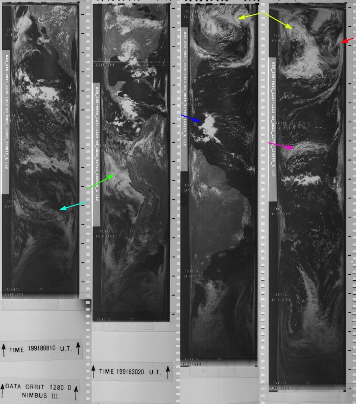 Although the NIMBUS image is again of poor quality, all 3 satellites clearly show the same weather systems as the Apollo image, and these systems are also very obviously part of developing global weather systems.
