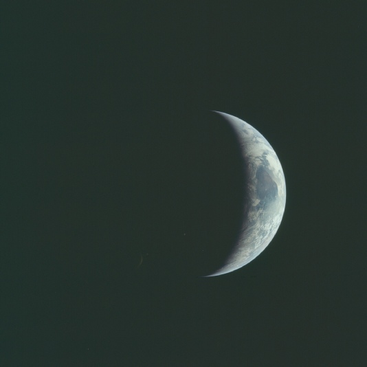 193:03:03 Collins: The Earth is really getting bigger up here and, of course, we see a crescent.