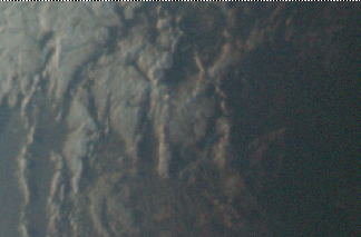 It should be evident that there are still features visible on this photograph that are also visible on the previous two pictures used from this magazine. The red, yellow and cyan arrows all point to the same cloud features shown in those colours in figure 4.3.99 while the magenta arrow in that figure picks out the eastern end of the band of cloud marked by the green arrow in figure 4.3.102. The banks of fog off the US coast are still visible at the northern end of the terminator line.
