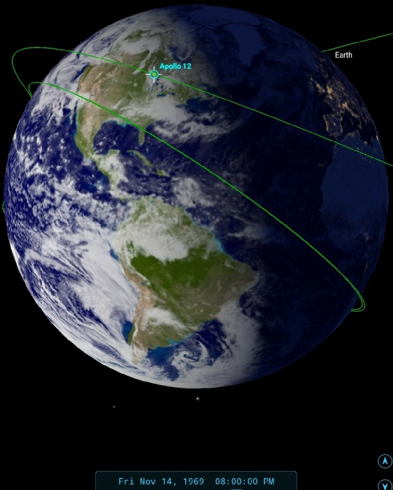 Figure 4.4.1.2: Screenshot from Apollo 12 broadcast on 14/11/69 (source given in text) with ESSA view (top right) and NIMBUS-