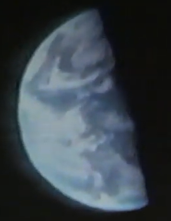 These features aren’t so obvious in the TV, but then you look at the still photographs taken around the same time they most definitely are. The first of those images don’t show a full Earth, but they certainly show good details of it (figure 4.4.1.3.