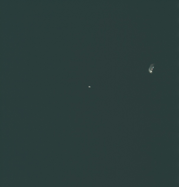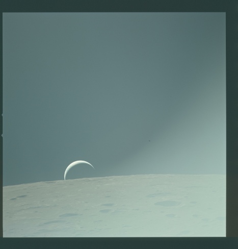 The transcript also suggests that the image was taken during TEI in the early hours of the 25th (02:25 to be precise) – something the thickness of the crescent would support. The mission transcript records a number of crew comments preparing for the last Earthrise:
