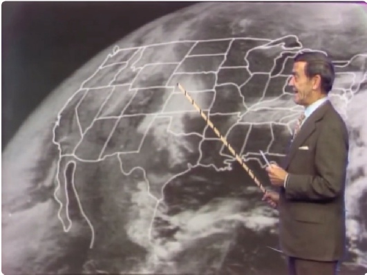 With an understanding of when the photograph was taken in mind, it is possible to identify the dark area of the visible crescent as the California coastline (blue arrow). This then allows what cloud systems that are visible to be placed on the ESSA mosaic. That mosaic's best fit track around the terminator would be number 4, or orbit 4409, commenced at 22:09 on the 24th. The image dated the 29th would be temporally much more distant than the one used here.