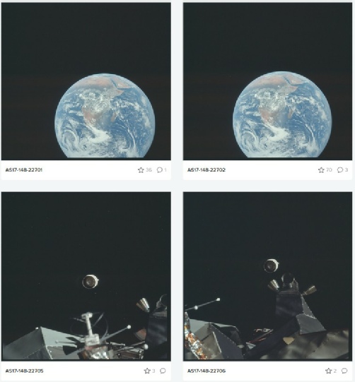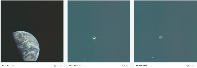 Figure 5.9.11.19: Photographs and video stills from Apollo missions, taken from the flickr archive, AFJ for Apollo 8, AFJ for Apollo 17