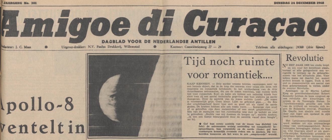Figure 5.11.1c: Lunar Orbiter Earthrise in a Dutch newspaper. The text suggests it’s what they saw. Source.