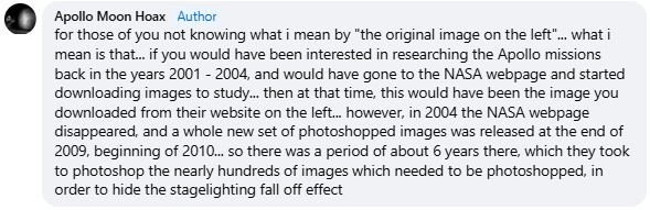 The same hoaxer idiot making AI do his bidding is also urging his followers to seek out original scans of Apollo photographs. Having found that NASA made a concerted effort to re-
