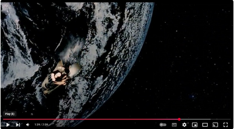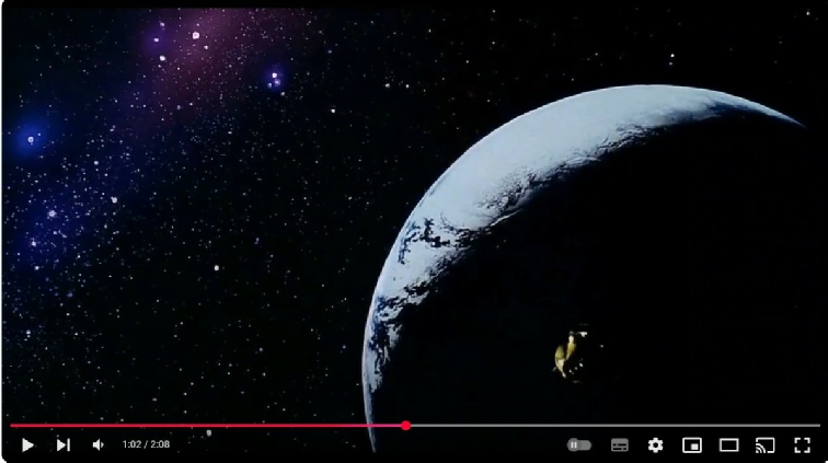 While it seems a little unsure as to which Saturn rocket it should be showing at launch, and mixes docking footage from lunar module and Skylab sequences the views of the CSM in space are actually quite good, and the dialogue is considerably more accurate than other examples I use here. The first use of Apollo footage comes with a short sequence of Earth, and I’ve spliced together a few screenshots in figure 5.5.11 below.