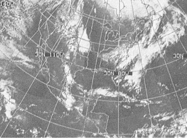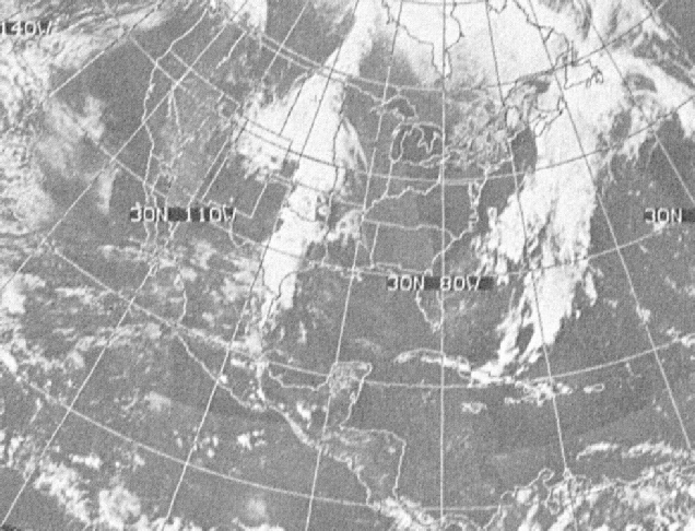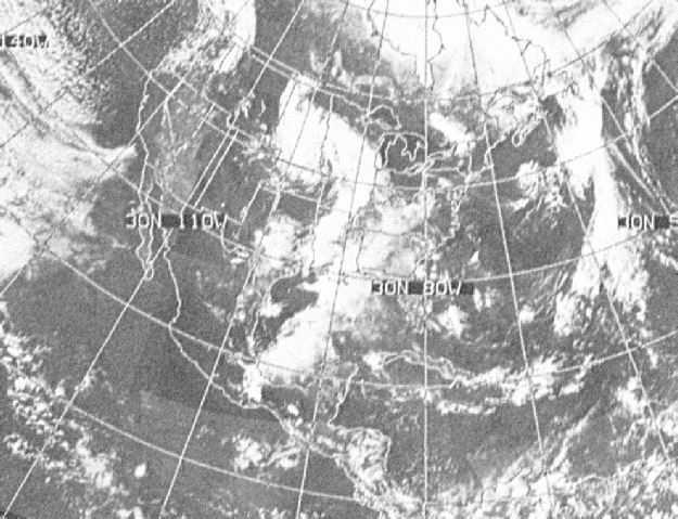 They were still unclear as to how clouds behaved and what the satellite images were actually showing, and much of the early research publications are based around ‘ground truthing’ satellite data. How, for example, could they have taken the satellite image of Hurricane Bernice from the day before launch and converted that into what was visible the day of the broadcast, as shown in figure 5.9.10.