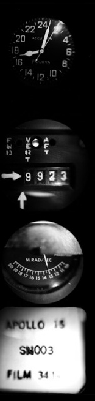 The exposures were time stamped and details of the orbital altitude and camera angle were also recorded, as shown in this example from Apollo 16. Note that the Bulova clock (used on all missions) is a 24 hour dial and is tricky to read!