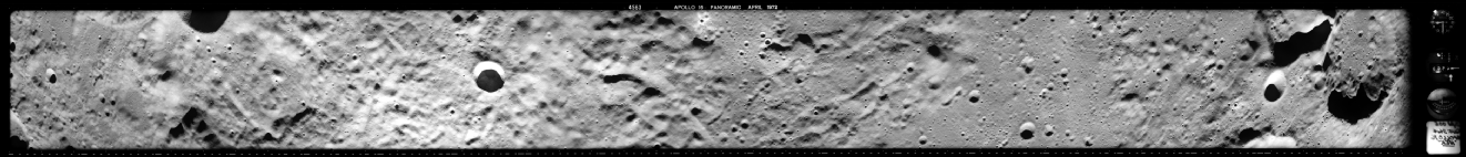 After briefly discussing Apollo Panoramic images here and here when discussing features observed on the lunar surface and the length of lunar shadows, I decided that this needed looking at in more detail and to give a little more information on the camera. As it turned out many of the photographs discussed below had already been identified by contributors to the Apollo Lunar Surface Journal, but not using the highest quality scans now available.