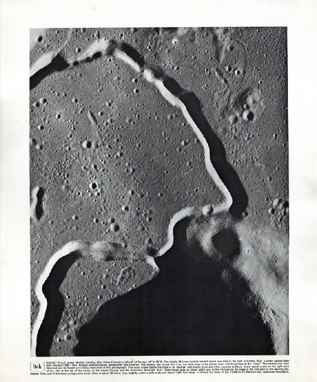 130:19:25 Worden: Okay, Houston. That does the Pan Camera pass over Hadley Rille, and you can let me know when the lens is tucked in.