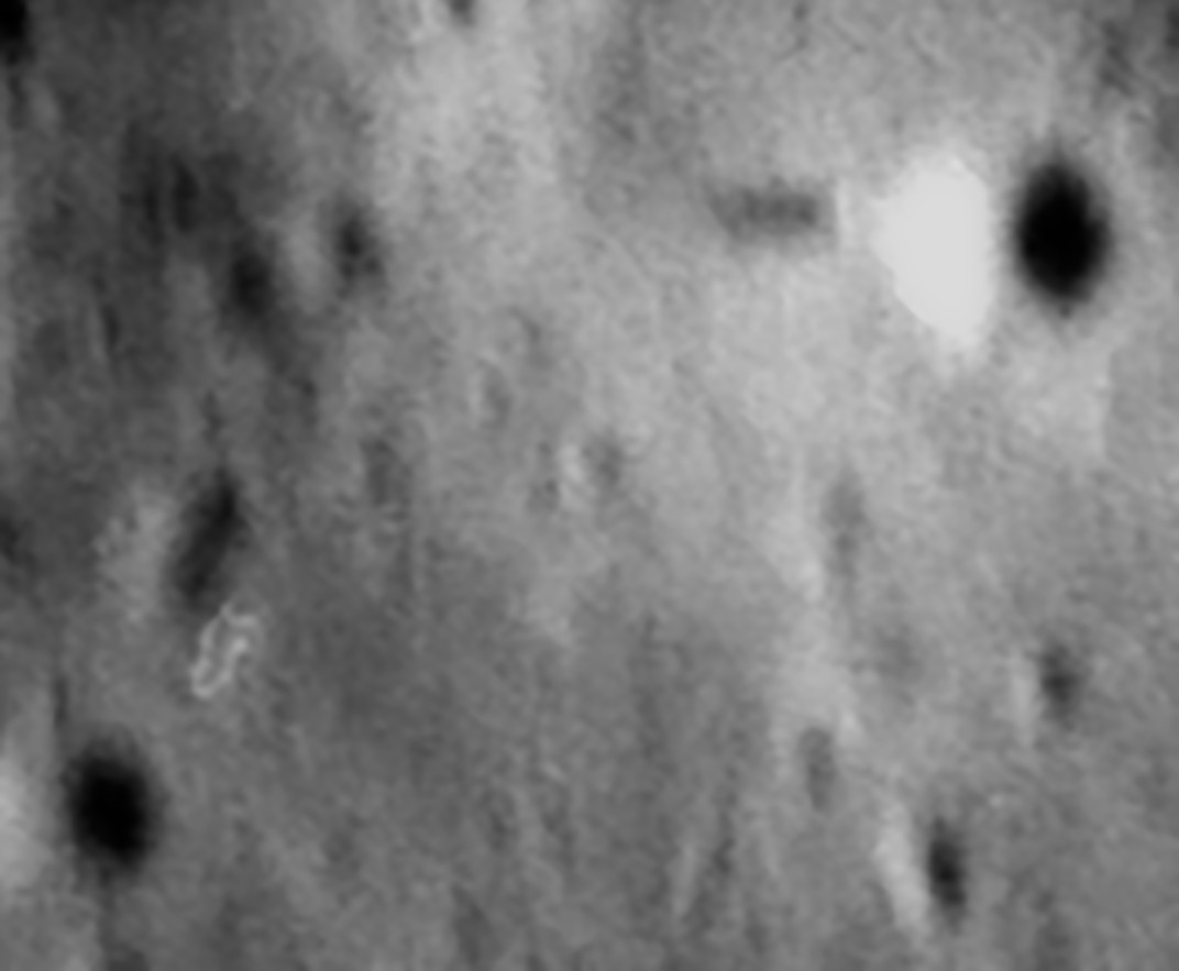 The landing site is again at the edge of the image on tile 1, and is nearer the bottom of the photo this time. Here’s a close up view, which I’ve sharpened a little to bring out the detail.