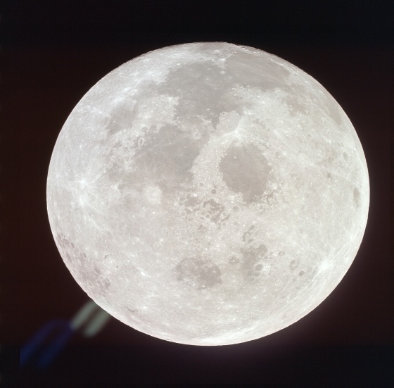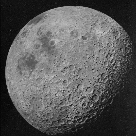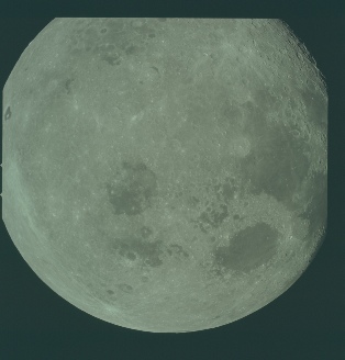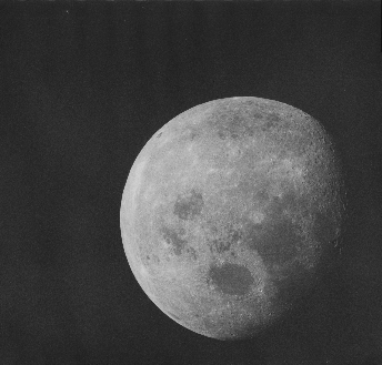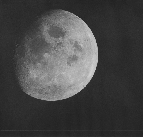 The view seen by the Apollo astronauts is little different to that as seen from Earth in this image, but it is still full compared with ¾ full, and still shows features that were not visible from Earth at the time of the photograph. Once again it is obviously a photograph taken from a vantage point of an Apollo craft emerging from the far side of the Moon on an earthbound trajectory.