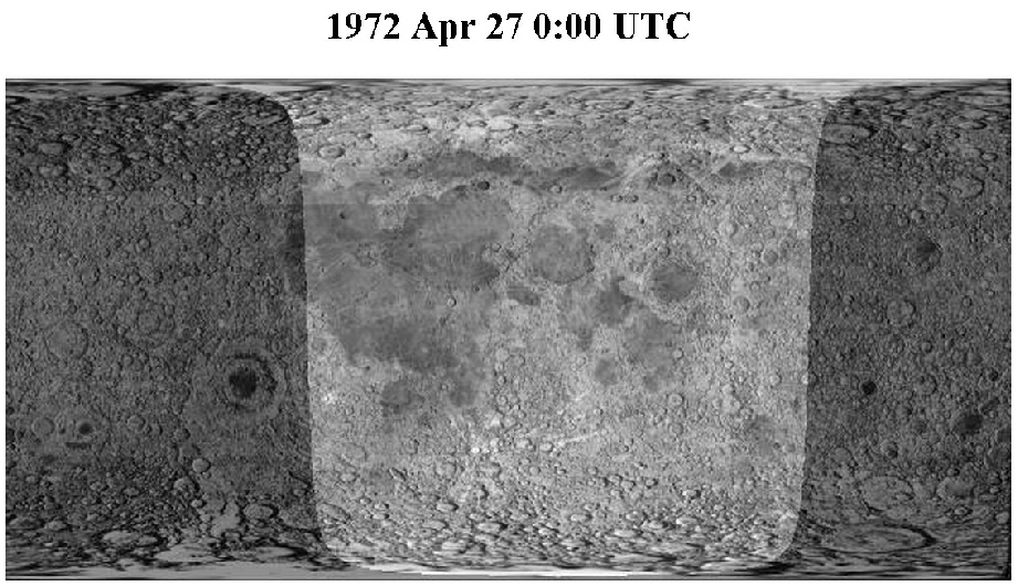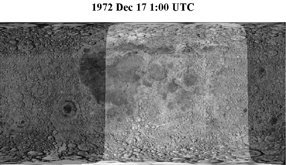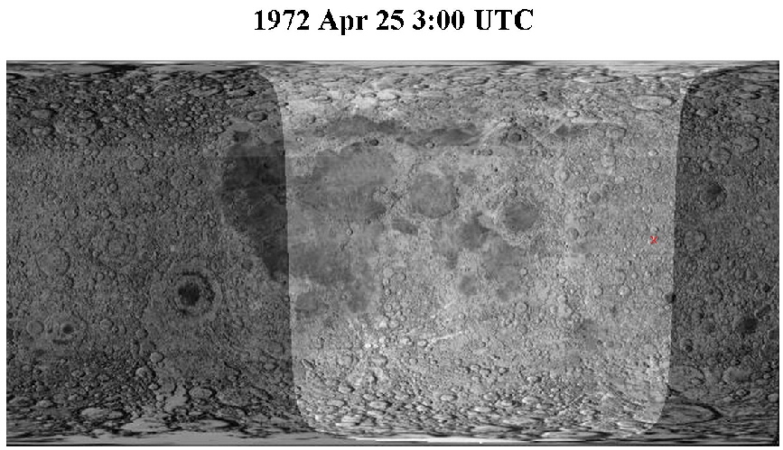 Fourmilab view of sunlit areas on the Moon at midnight, April 27 1972
