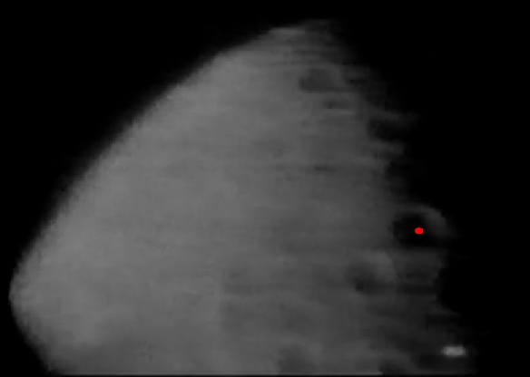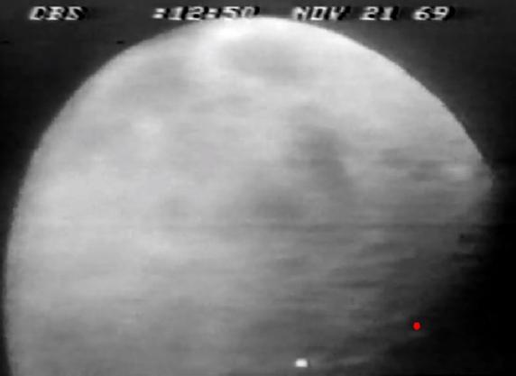 The TV broadcast at the same time as this photograph was taken shows the same scene, and now that the returning craft has emerged from the signal blocking effect of low orbit viewers on Earth were treated to a view of the far side that they would never normally be able to see. This youtube video features a couple of views of the moon broadcast on US TV on the 21st. It’s worth pointing out that the timestamp on the video is not local or GMT, it is the timestamp of the video itself. These views are shown below. Cantor crater has again been identified with a red dot.