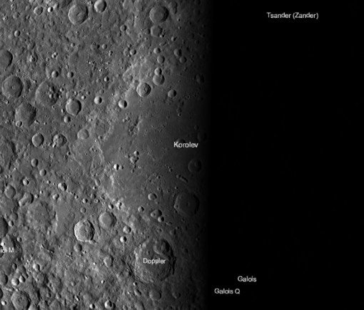 The location of the terminator is consistent with the time suggested for these images, and it is also worth pointing out that Korolev is now completely in darkness.