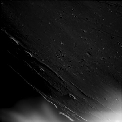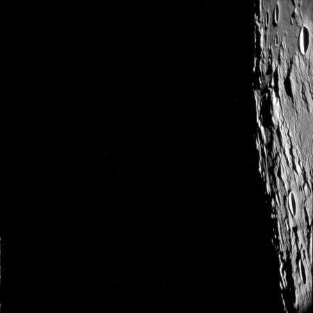 One of the first views of the lunar terminator can be seen in magazine U. The early part of this magazine consists of photographs of the solar corona, which were carried out before LOI.