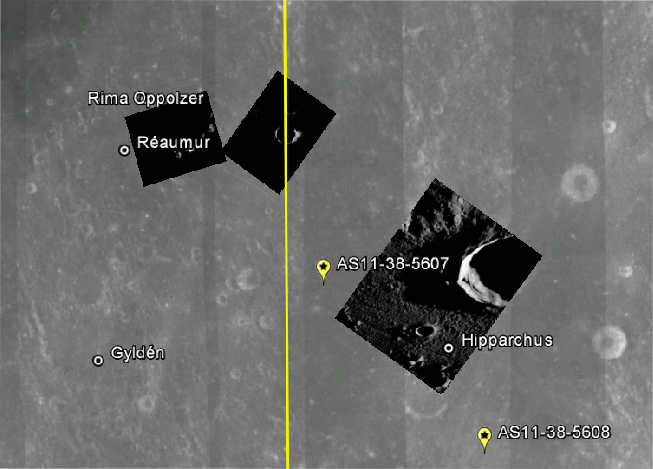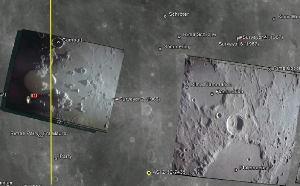 Below left is Google Moon with the Apollo image superimposed (along with AS11-