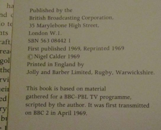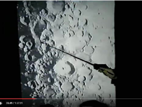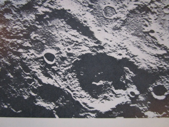 That’s from my own copy of ‘The Moon as Viewed by Lunar Orbiter’, and you can clearly see it is of much better quality that the one he is showing on screen. Here’s my copy of the book, open at no page in particular, just to prove I have it.