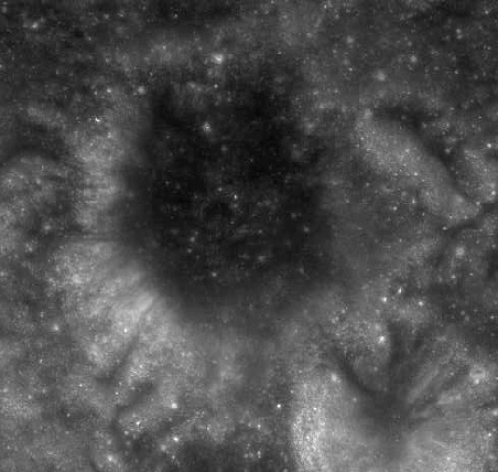 Even more ludicrous is his next claim. He loads of a slide of Icarus crater, which again he doesn’t identify, but I know because I looked that he uses (again from the same book as before) image II-