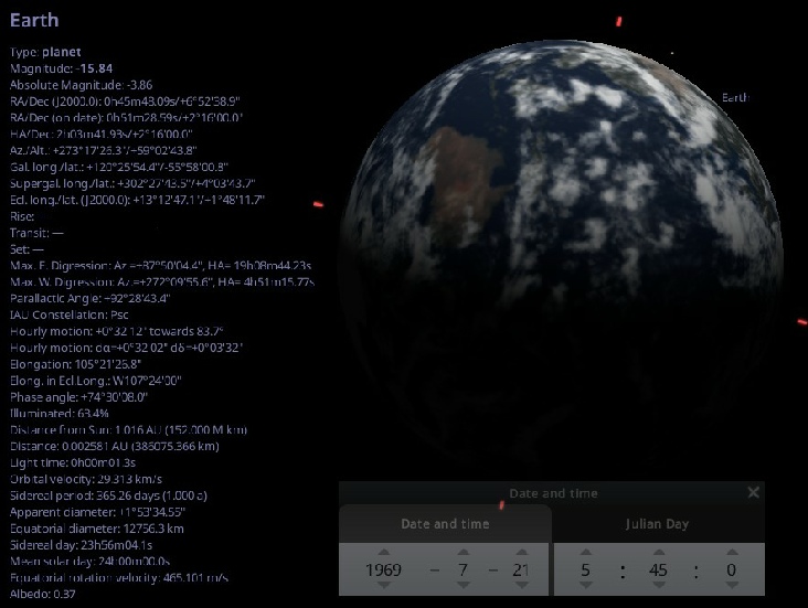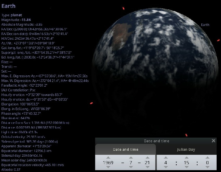 Figure 4.3.6.7 shows what Earth looked like in Stellarium for that time, and Fourmilab Earth viewer’s depiction of it.
