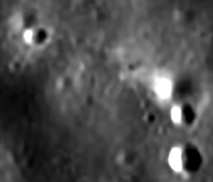 Japan’s Kaguya probe was launched on 14/09/07, finishing its mission on 10/06/09. It carried several instruments, but the one used here is the Terrain Camera. Several products are derived from that camera, but the one used that consists of individual photos (rather than composites) are the ‘DEM TC Ortho” map. Those images (as well as other Kaguya data) are available here. This page discusses the ‘halo’ of brightened ground at the Apollo 15 site.