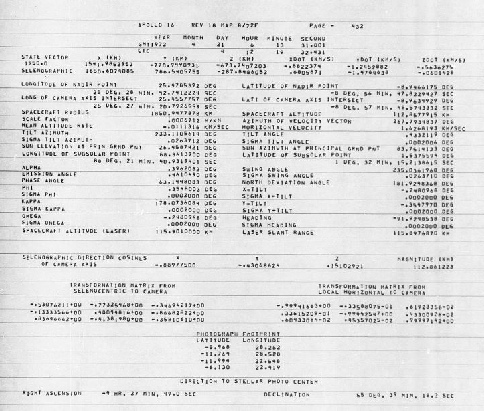 So what are they showing? Well, to try and work that out we need to know where we’re looking. Thankfully we have some clues from this 1.4 Gb document, and from the images taken by the main camera. The document lists the state vector data for the photography, in other words where the CSM was in space and the location of the images it took.