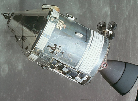 Ursa Major is over there on the right. At the time this photograph was taken the CSM was also taking Mapping Camera images, which means that it was oriented with the SIM bay pointing downwards but at an angle. The presence of the dipole antenna in the images from this revolution shows that the CSM was travelling nose first: